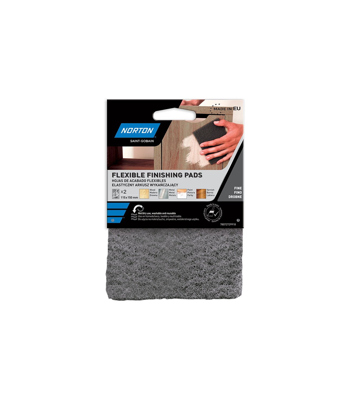 Hojas flexibles 115x150 mm de fibra sintética resistente y duradera. Adecuado para uso en superficies curvas y zonas de difícil acceso.