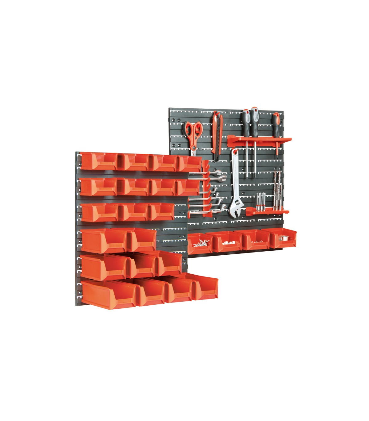 Sistema organizador con 43 accesorios surtidos. Fabricado en plástico.