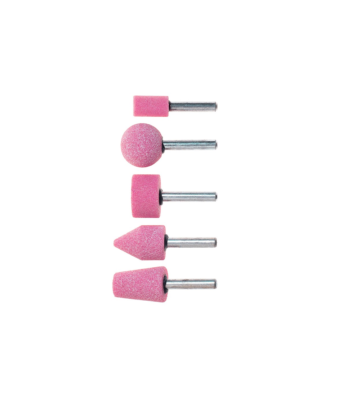 Juego 5 unidades surtidas. Para metal, vidrio, cerámica y plástico. Corindón rosa.