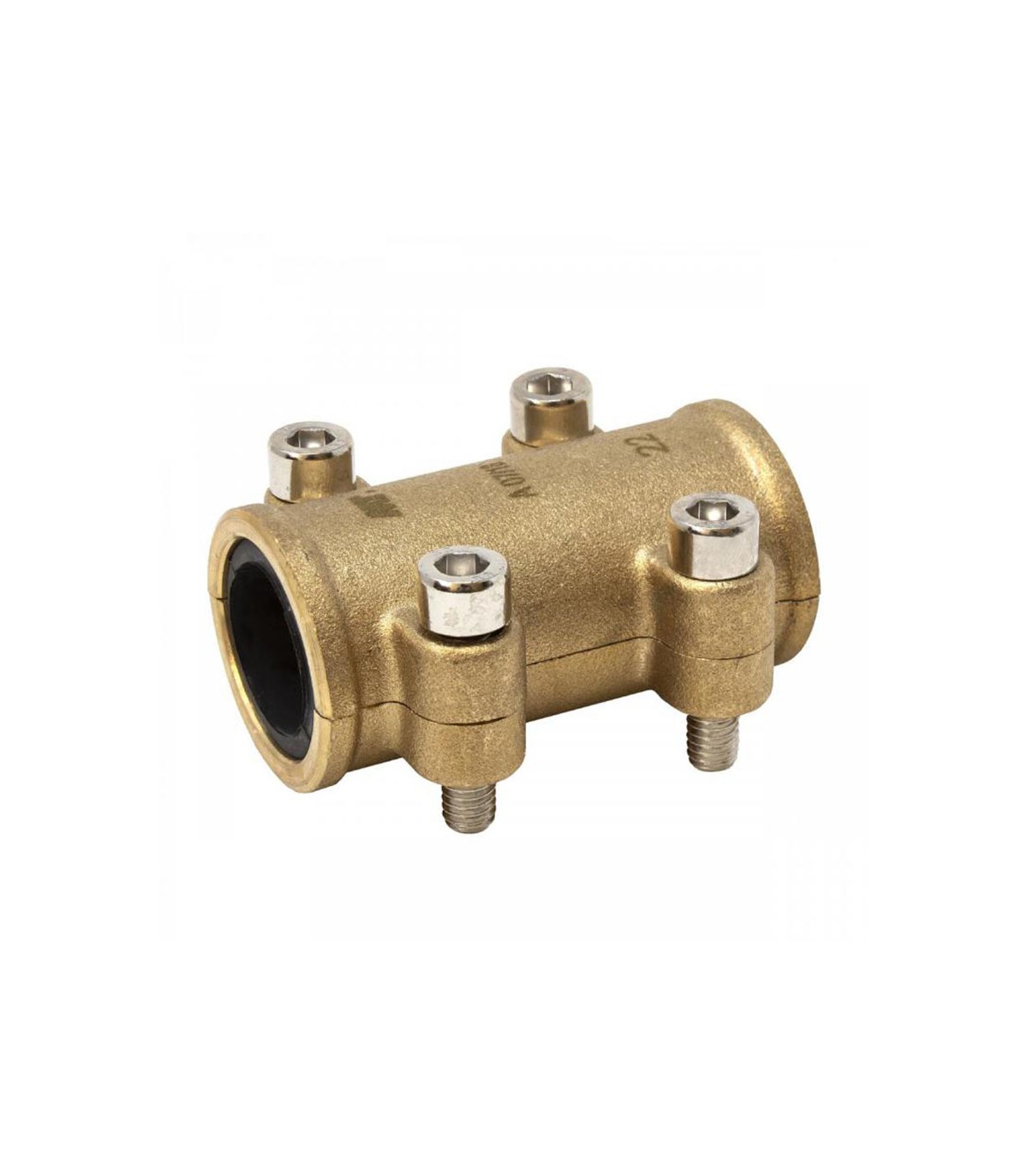 Abrazadera tapaporos para tubería de cobre, galvanizada e inox. Cuerpo reforzado fabricado en latón. Soporta una presión nominal de 16 bar y admite una temperatura de trabajo de entre -20ºC y 120ºC. Permite reparar fugas sin necesidad de hacer soldaduras ni cortar el tubo.
