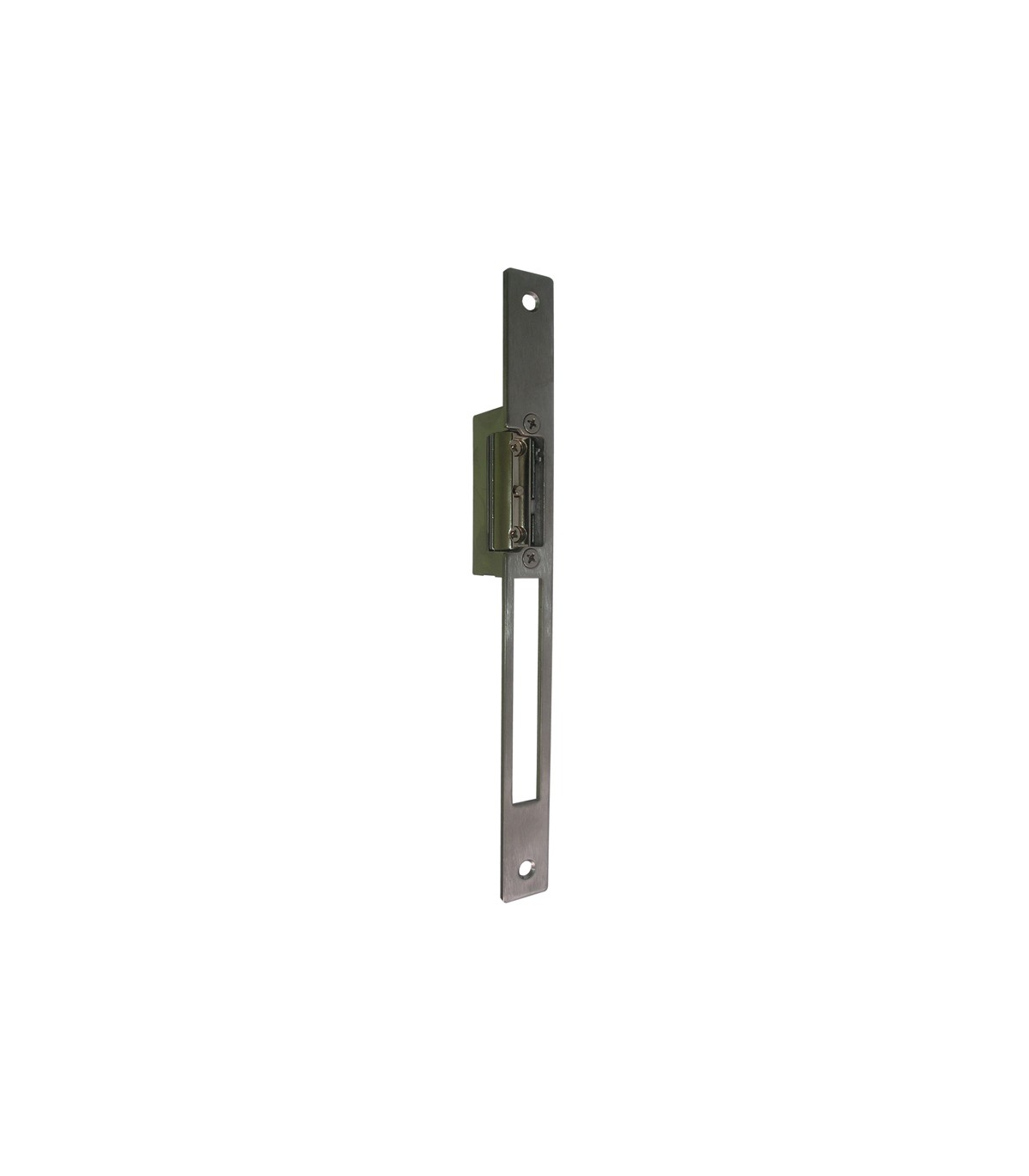 6-12 V. Pestillo ajustable. Perfil europeo. Ideal puertas de aluminio. Cajetín reducido 66x25,5x16 mm. Reversible. Regleta verde. Ancho armadura 22 mm. Frontal inox.