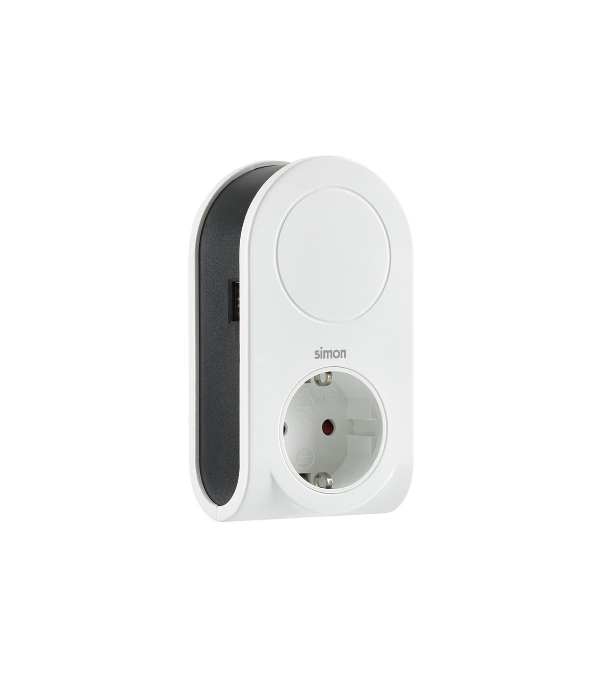 Cable enrollable. 1 puerto USB-A, 1 toma.