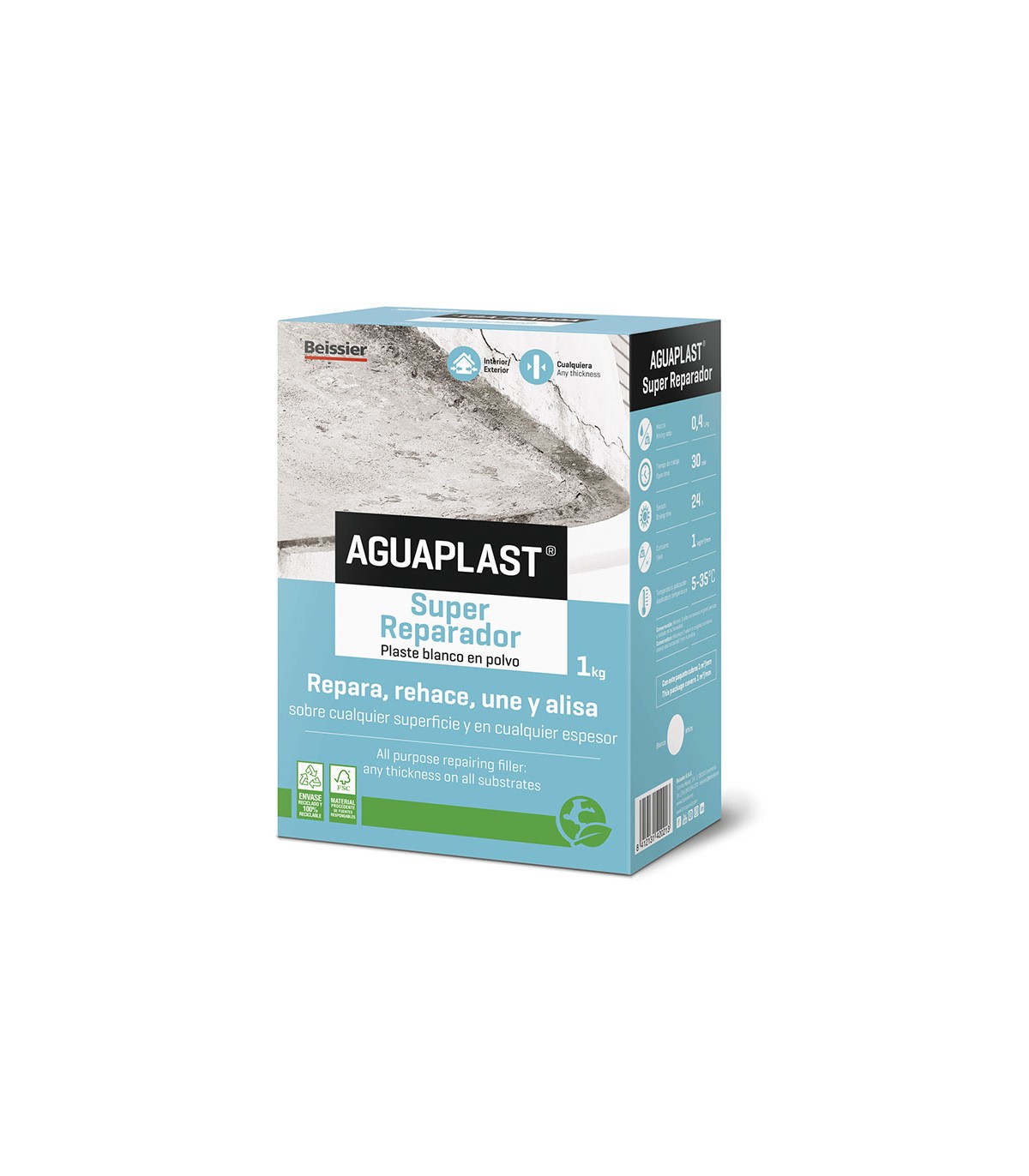 Plaste en polvo interior/exterior. Usos: reparar, rellenar y unir todo tipo de materiales de obra. Resistente a la humedad.