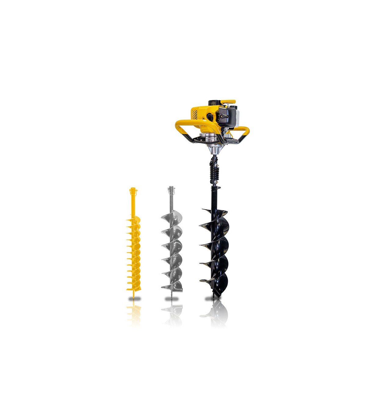 Profundidad 80 cm. Reduce vibraciones. Taladro con brocas. Manillar doble. Encendido electrónico. Protector antivibraciones. Interruptor encendido.