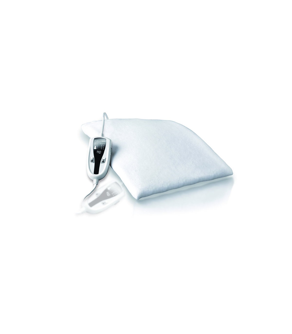 Almohadilla acolchada con funda textil. Calentamiento rápido. 4 niveles de temperatura. Programable 3 tiempos: 45, 60 y 90 min. Apagada automática después de 8h de uso continuado. Descenso automático de la temperatura a los 90 min de uso.