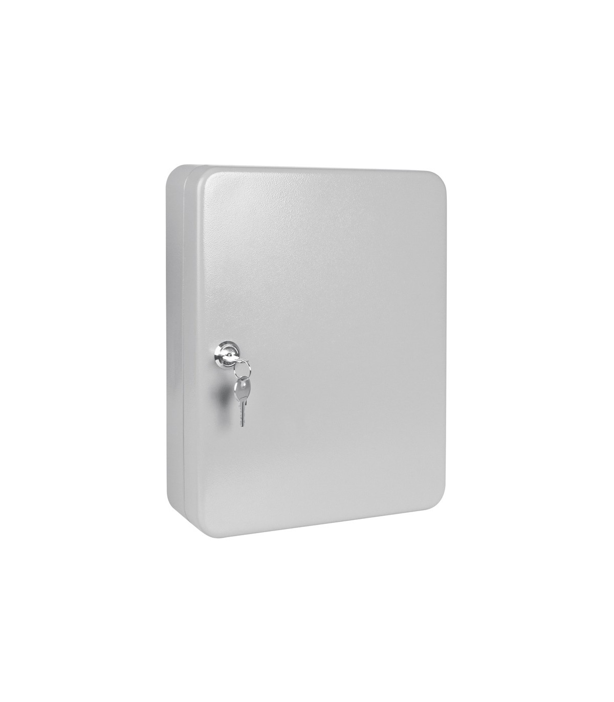 Acero pintado color gris claro. Incluye llaveros portaetiquetas y colgadores numerados. Llave JMA en bruto HEL1. Incluyen tacos y tornillos para colgarlos.