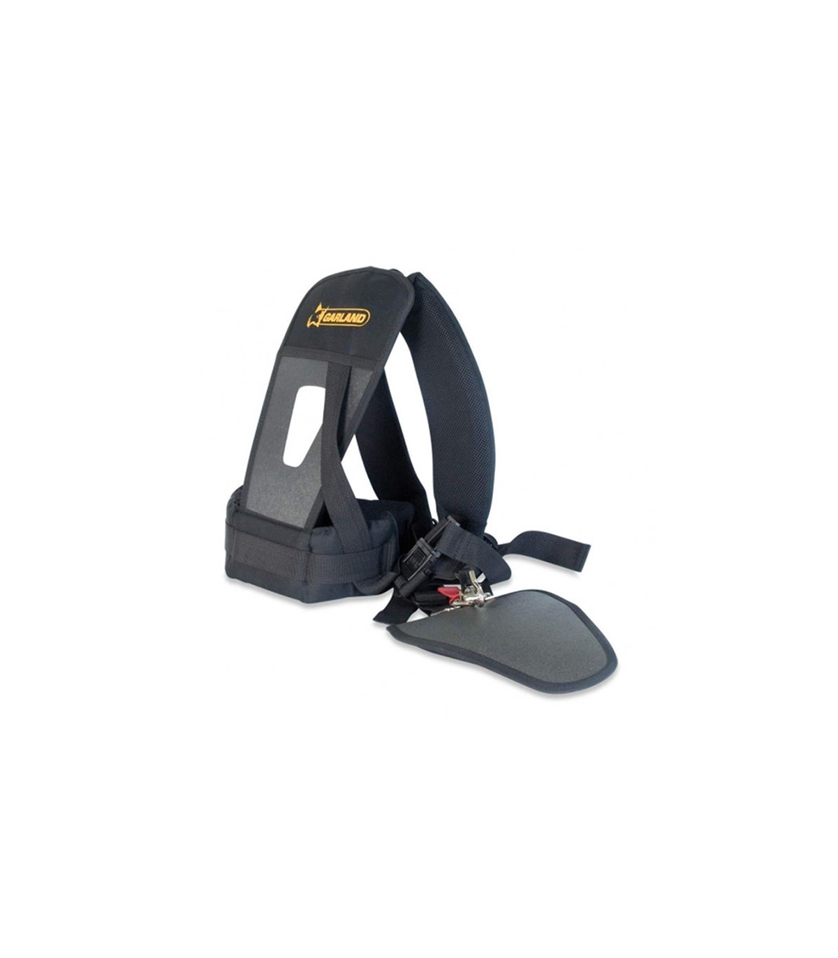 Arnés doble para desbrozador con refuerzo acolchado. Ergonómico y ligero.