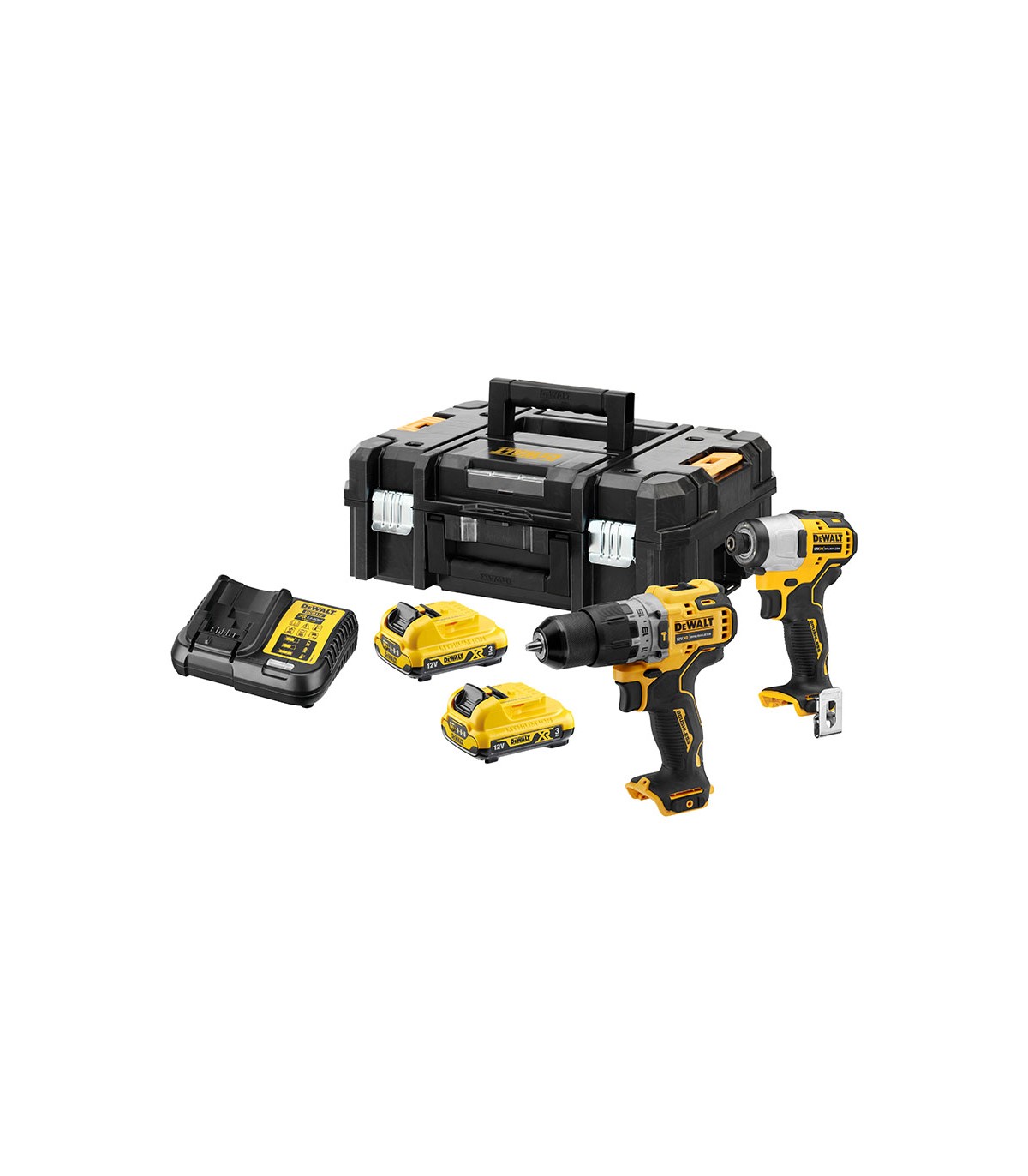 Percutor 12V XR + atornillador impacto XR. 2 baterías 3 Ah. Sin escobillas. Incluye maletín TSTAK II.