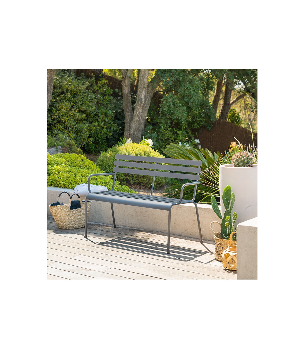 Estructura tratada Galvanoplastia anticorrosión. Estructura tratada con epoxi antioxidante. Producto tratado contra la decoloración. Reposabrazos para un confort óptimo. Dimensiones: 114x56xh.79 cm.