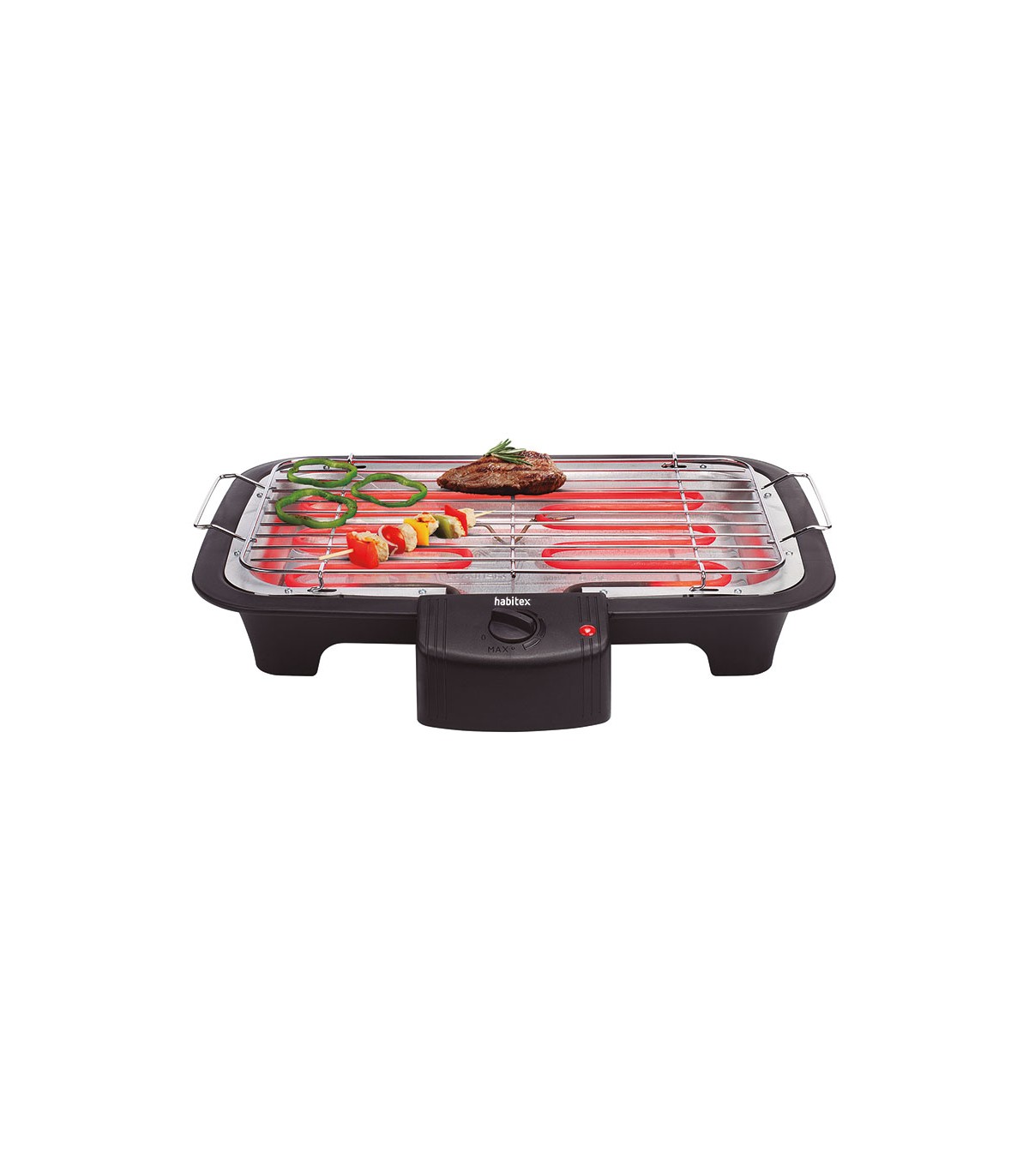 Superficie cocción 38x22 cm. Carcasa de plástico. Regulador de temperatura contínuo y ajustable. Parrilla apta para lavavajillas. Altura ajustable. Bandeja recoge grasa. Asas integradas.