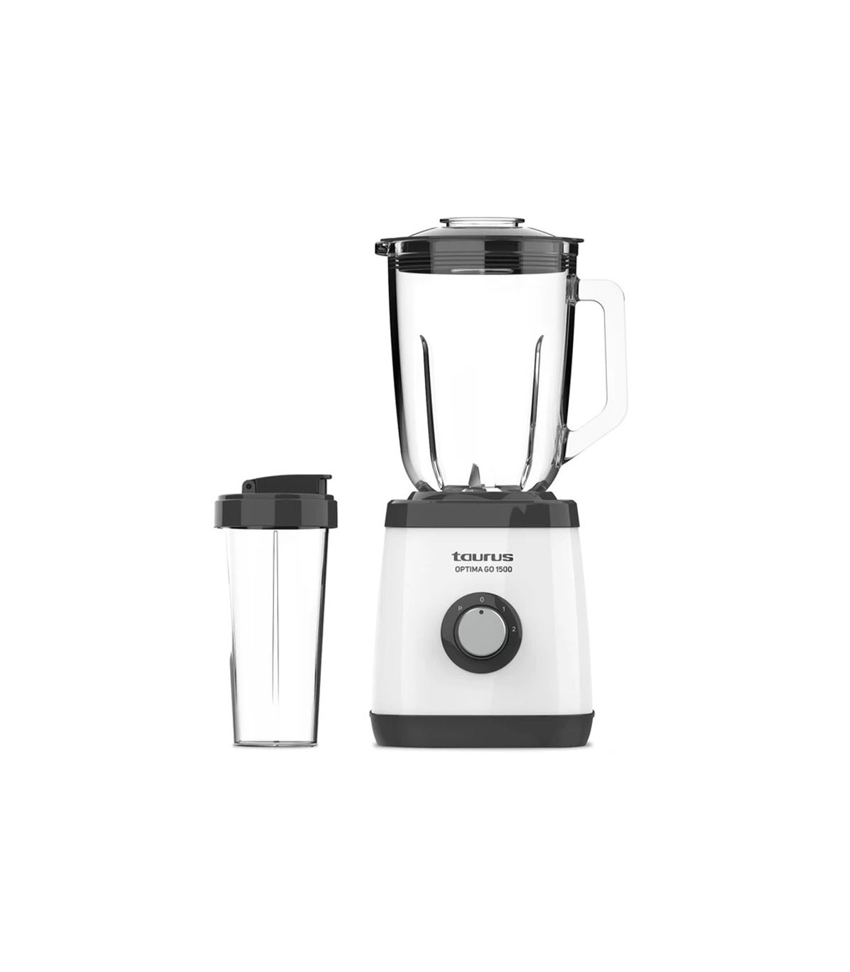 2 velocidades + función turbo. Cuchillas de 4 filos de acero inox. Jarra de cristal graduada y apta para lavavajillas. Vaso hermético para transportar tus batidos.