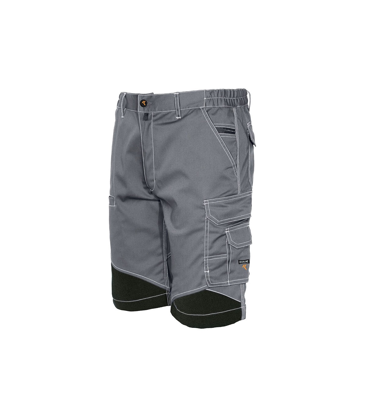 Con triple costura. 9 bolsillos. Color gris claro. Tallas: M-L-XL.