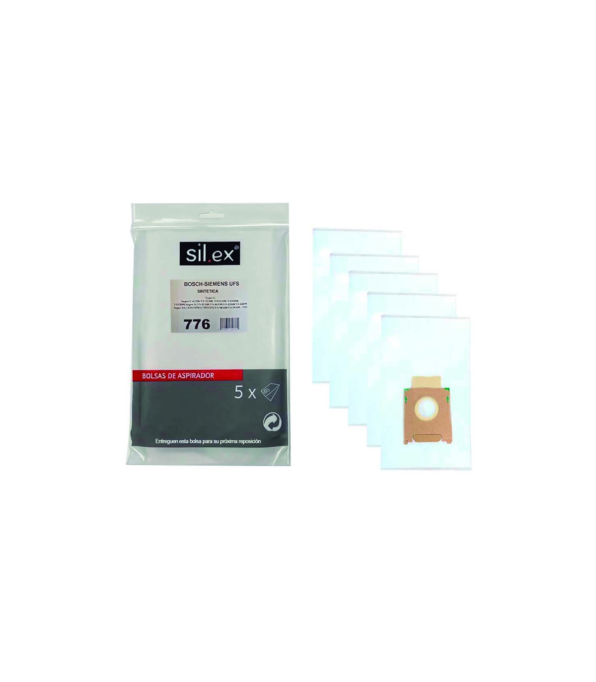 Bolsa con 5 unidades. Material sintético multicapa o papel según modelo. A continuación se indican los que acepta cada tipo de bolsa.