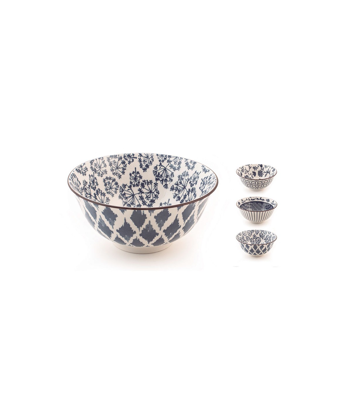 Porcelana blanca con estampado floral azul.