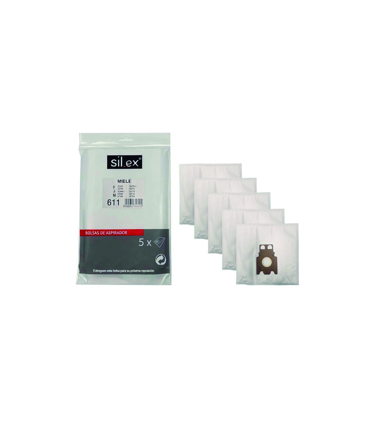 Bolsa con 5 unidades. Material sintético multicapa o papel según modelo. A continuación se indican los que acepta cada tipo de bolsa.
