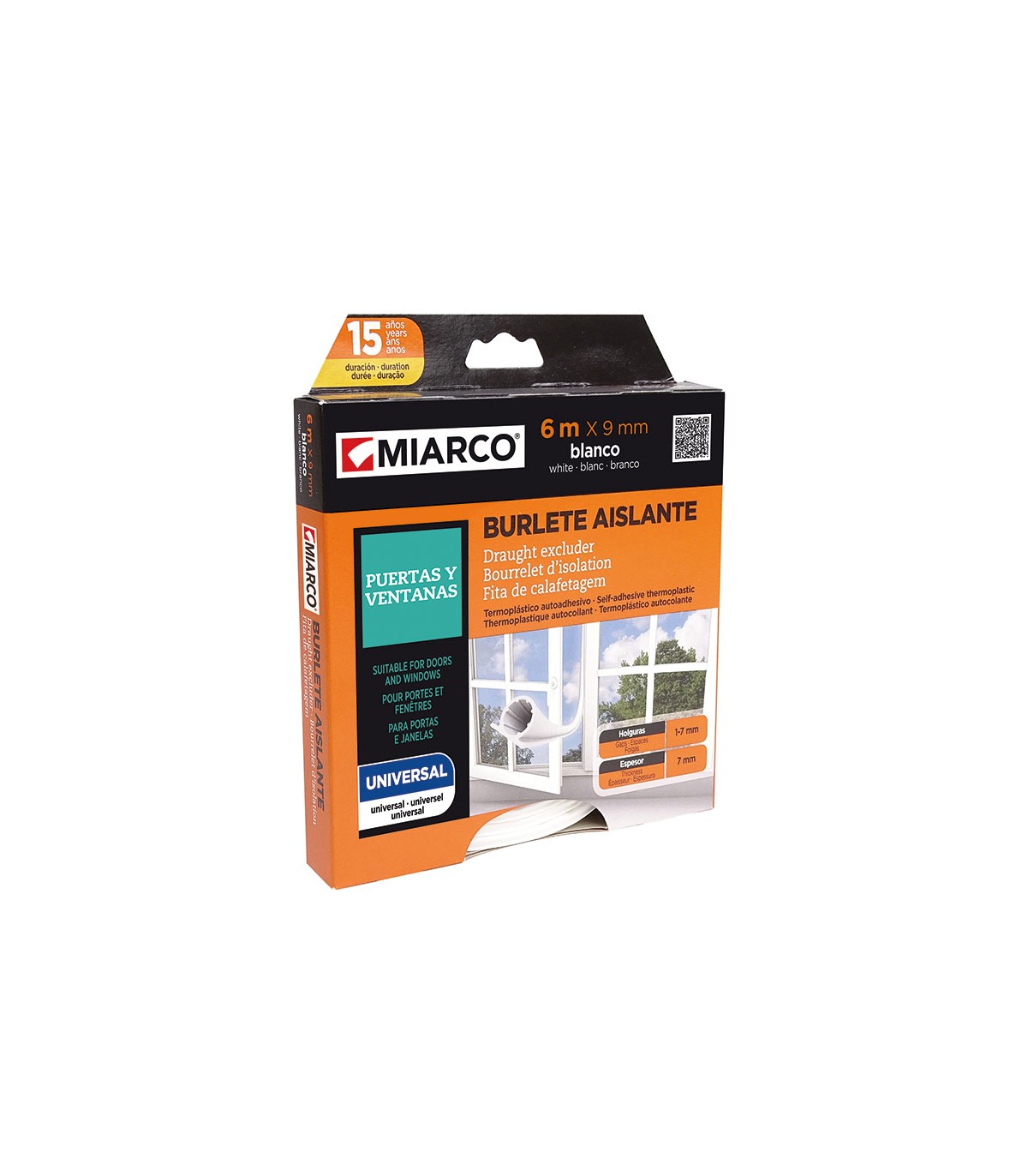 Autoadhesivo. Perfil tipo tubular. Para holguras de 1 a 7 mm.