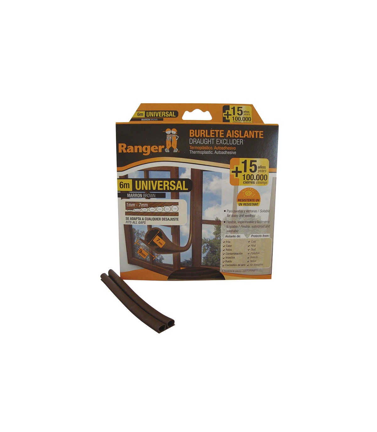 Autoadhesivo. Perfil tipo tubular. Para holguras de 1 a 7 mm.