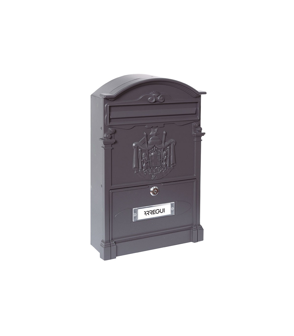 Aluminio y trasera del buzón acero galvanizado. Dimensiones: 26x9xh.42 cm. Capacidad para DIN A4. Medida boca 220x35 mm. La tapa de boca dispone de un muelle que la mantiene cerrada. .