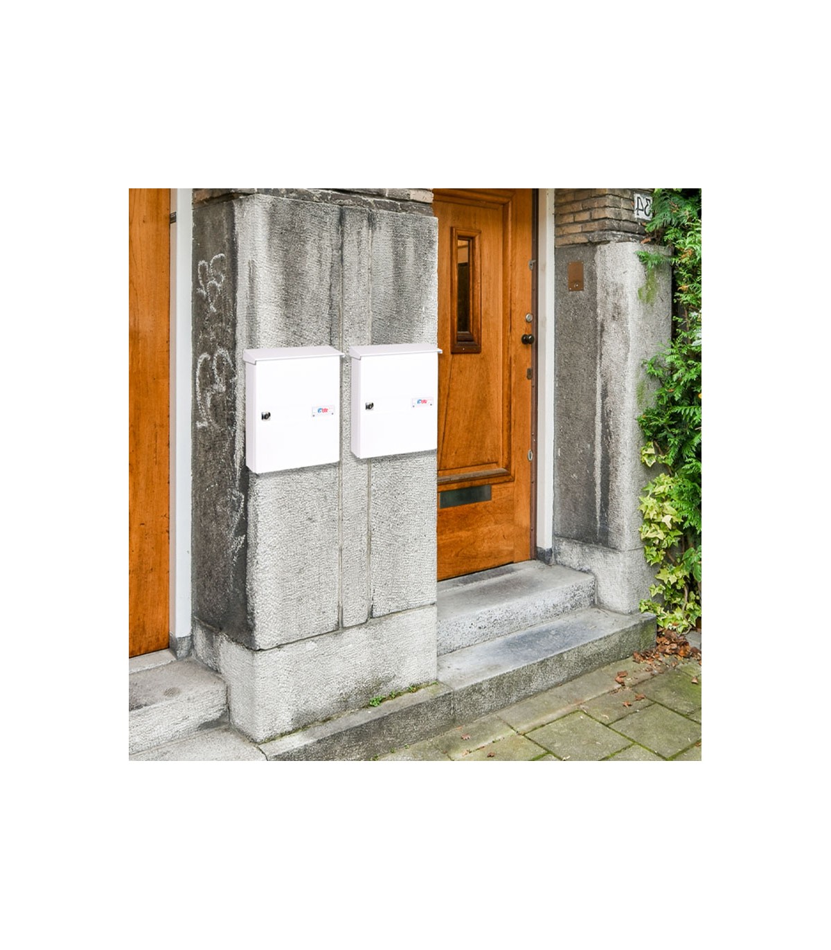 Acero galvanizado y pintado. Soporte anticaída de correspondencia. 24x87xh.30 cm.