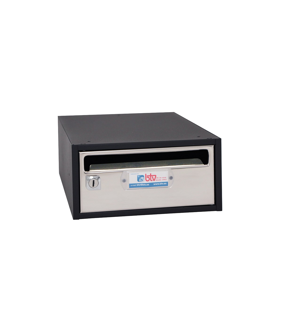 Cuerpo en acero negro. Puerta en inox. Apertura lateral. Cerradura grado 1 (EN-13724).