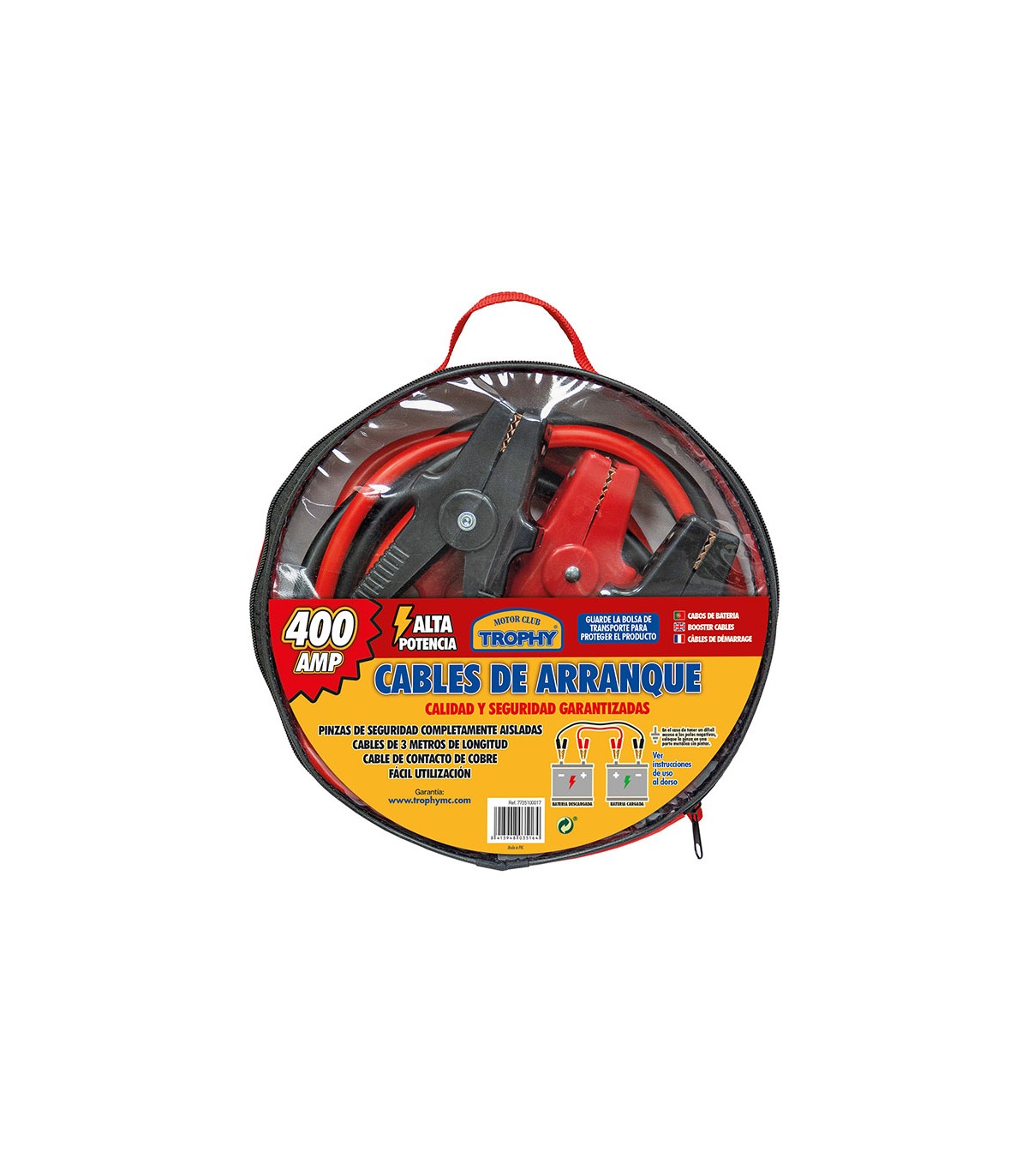 Juego 2 cables de cobre. Pinzas de seguridad completamente aislada. Funda de transporte. 400 AMP.