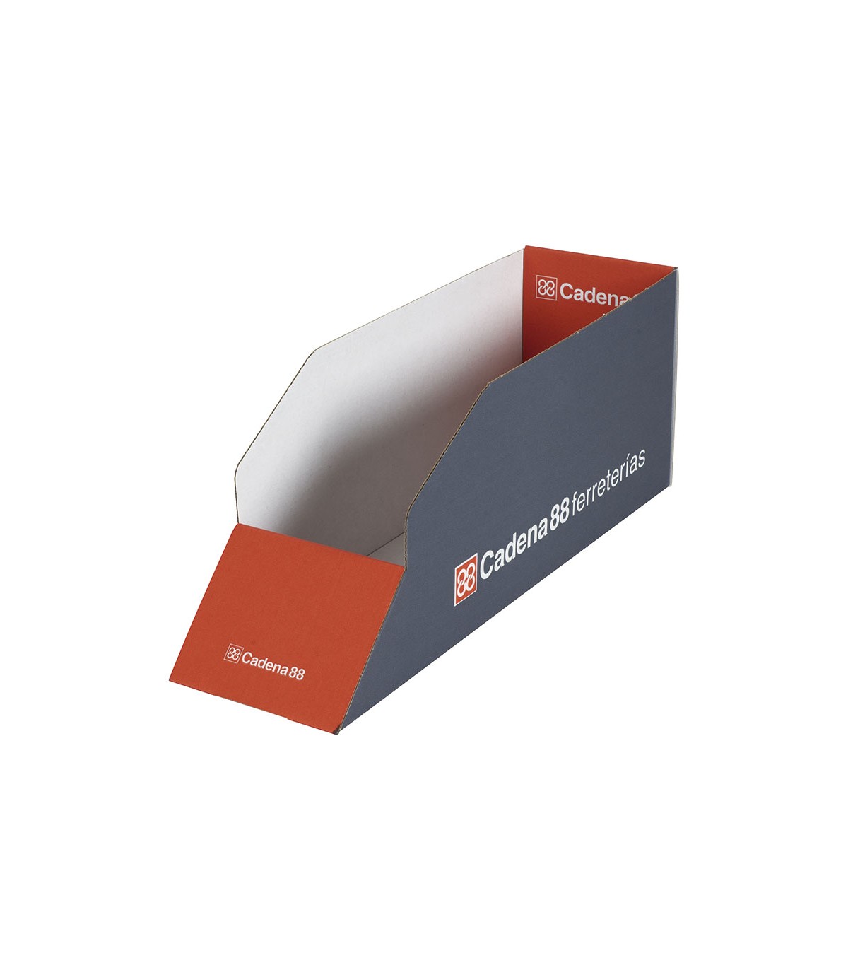 Fabricada en cartón microcanal con impresión corporativa Cadena 88.