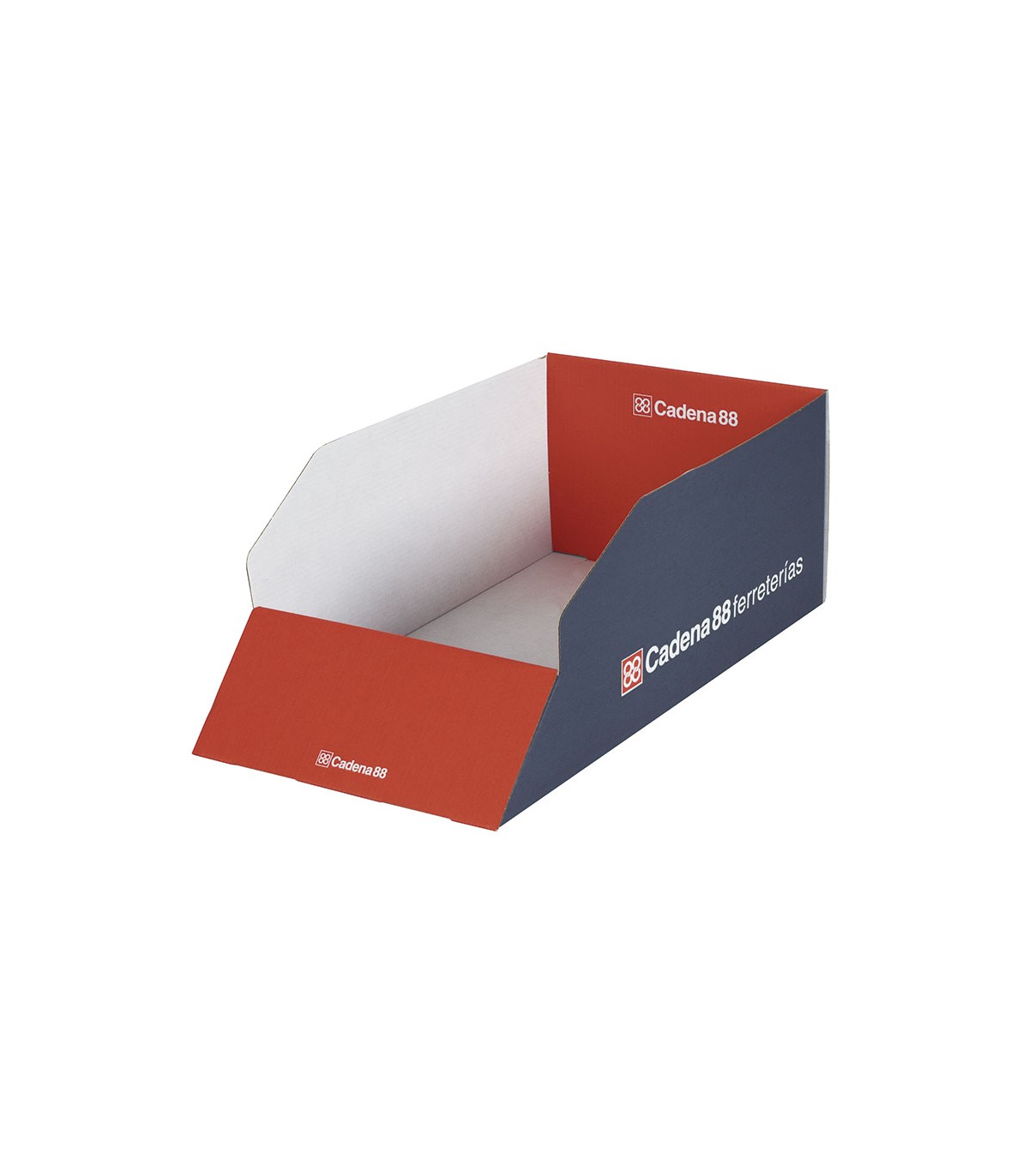 Fabricada en cartón microcanal con impresión corporativa Cadena 88.