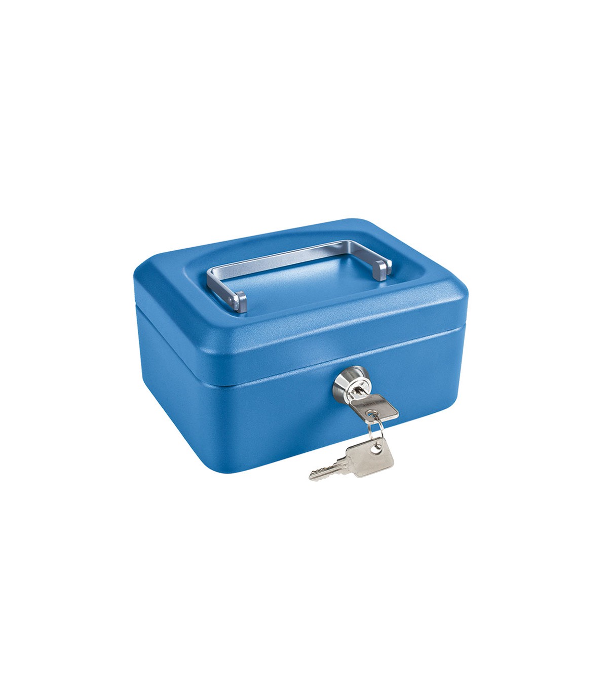 Acero pintado. Bandeja portamonedas interior incluida. 4 medidas: S, M, L, XL. 3 colores: azul, negro o rojo. Llave en bruto CIN-1.