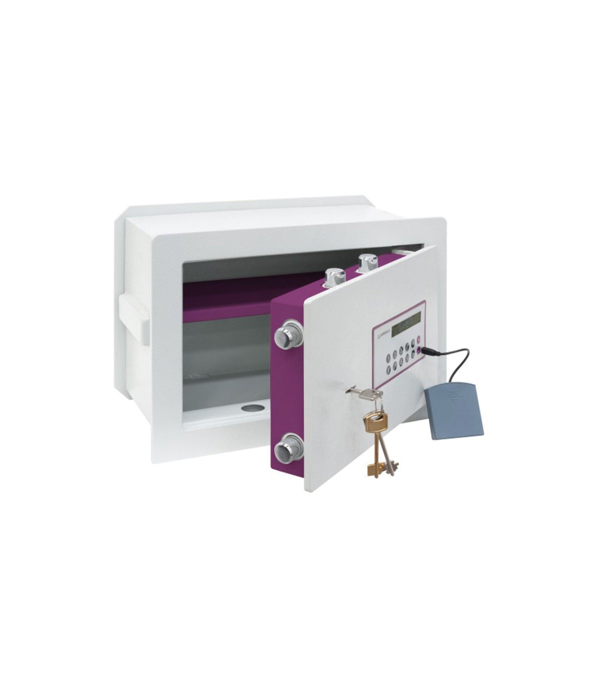 Frente de acero 6+3 y cuero 3 mm. 2 códigos de apertura electrónica y llave de emergencia. Luz interior.