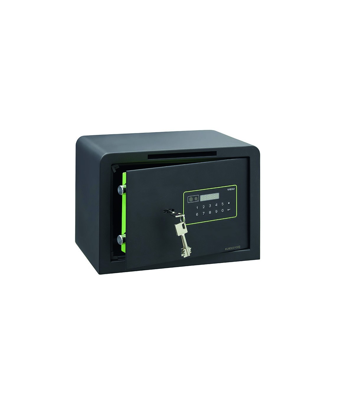 Apertura de doble seguridad con teclado electrónico y llave. Frente acero 6 mm. Pantalla digital. Bulones giratorios antisierra. 1 millón de combinaciones.