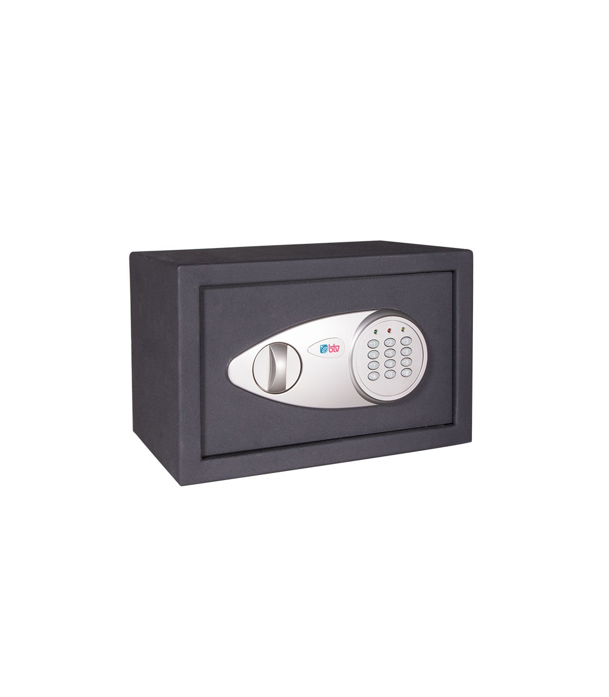 Espesor puerta de 4 mm. Cuerpo 1,5 mm. 2 bulones ø 20 mm. Cerradura de pomo + teclado: 2 a 8 dígitos. Cerradura de emergencia. Aviso de pilas bajas. 4 pilas AA incluidas. Color negro.