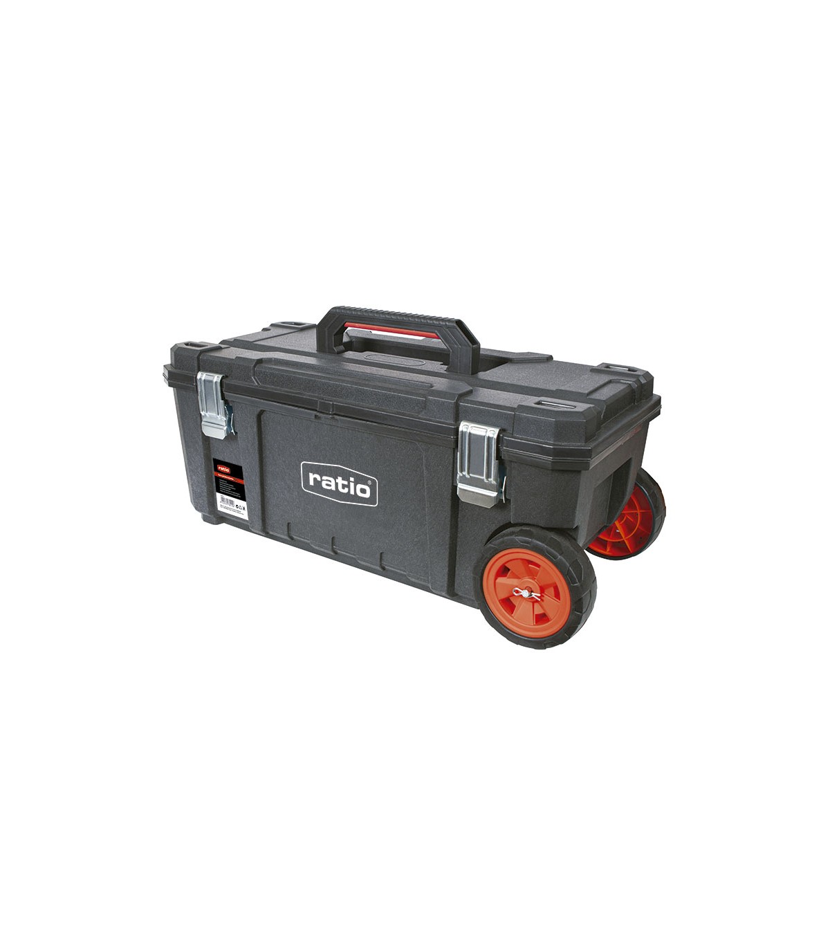 Armazón espuma estructural resistente. Tapa con sello resistente al agua. Media bandeja extraíble. Tapa con ranura en V integrada. Ruedas caucho ø 145x50 mm. Asa metálica telescópica. Cierres metálicos y hueco para candado.