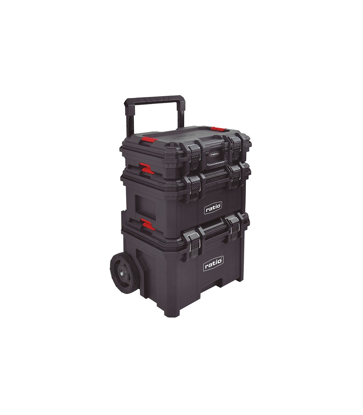Estructura PP antichoc. Tapas herméticas con sello resistente a la intemperie IP65. Compuesto por 3 piezas: caja herramientas superior, caja interna y arcón inferior con ruedas TPR ø 200 mm. Sistema de anclaje automático entre las 3 piezas.. . .