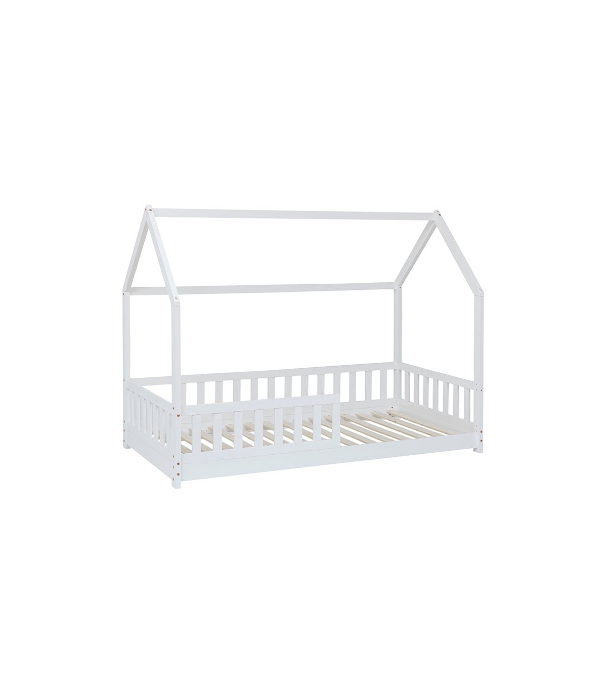 Pino/madera contrachapada. Base de láminas. Barandilla anti-caídas. 90x190 cm. Color blanco.