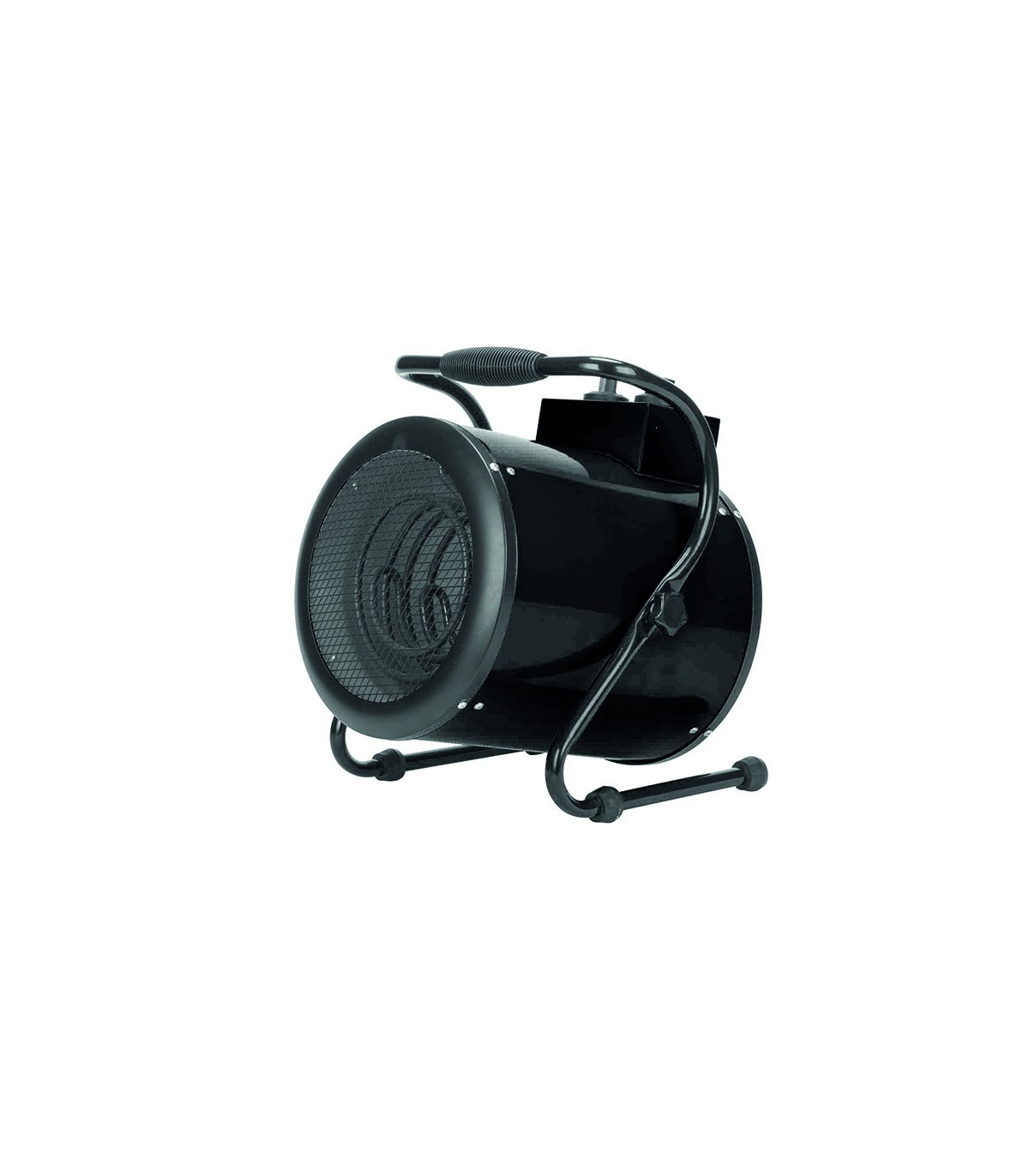Cuerpo de acero lacado en negro. Función ventilación-calefacción. Termostato regulable. Ángulo ajustable verticalmente. Portátil con asa resistente al calor