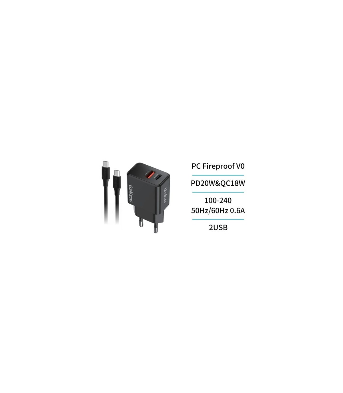 Cargador dual USB y USB-C con cable UNICO