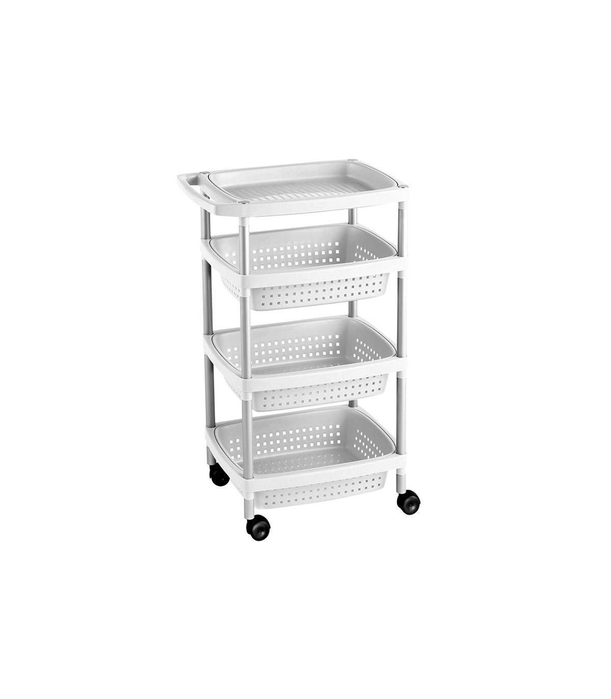Color blanco. 3 cestas + bandeja superior.