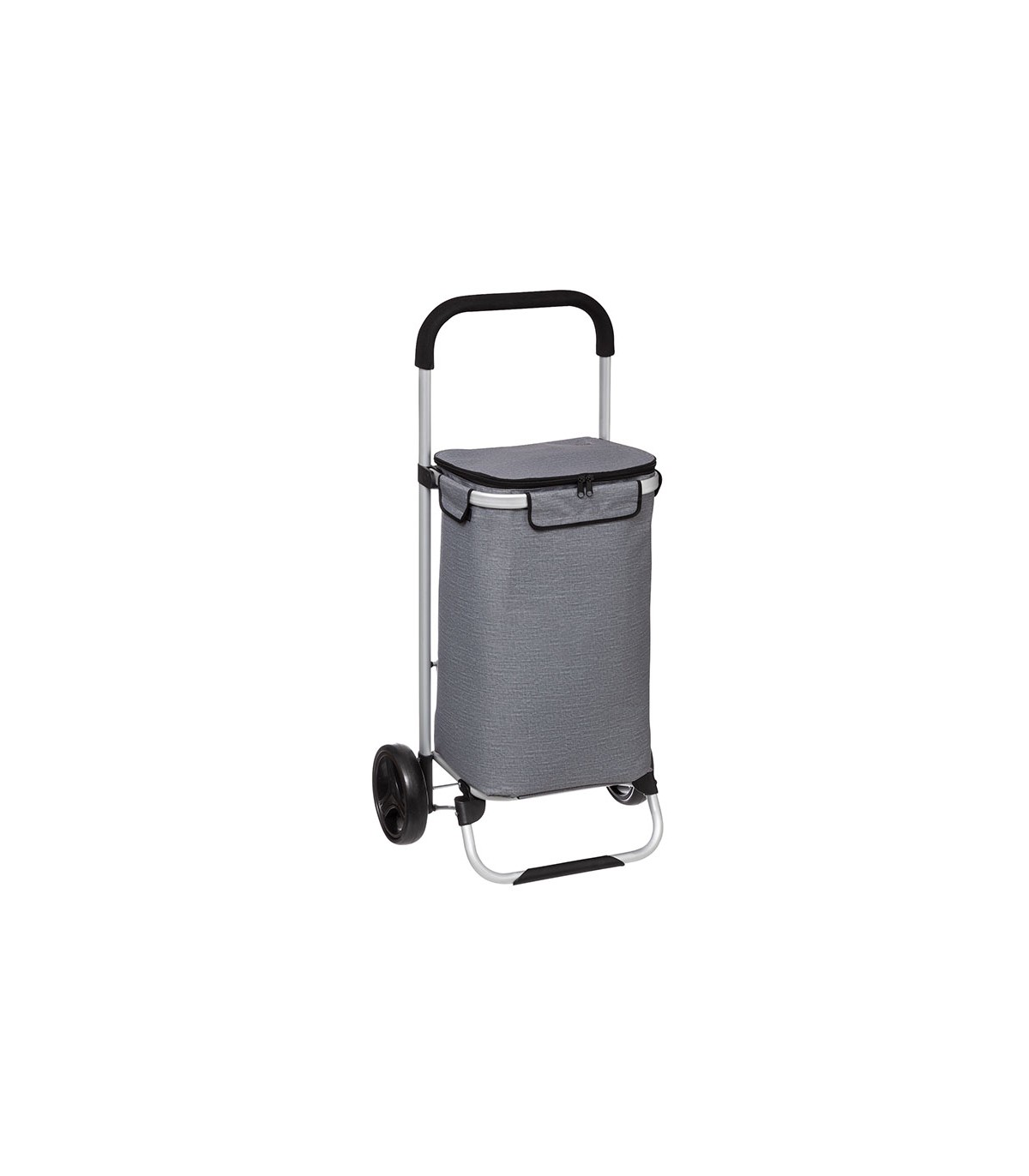 2 ruedas. Color gris. Chasis plegable aluminio. Bolsa poliéster/isotérmica 40 litros. Con forro interior 100% isotérmico.