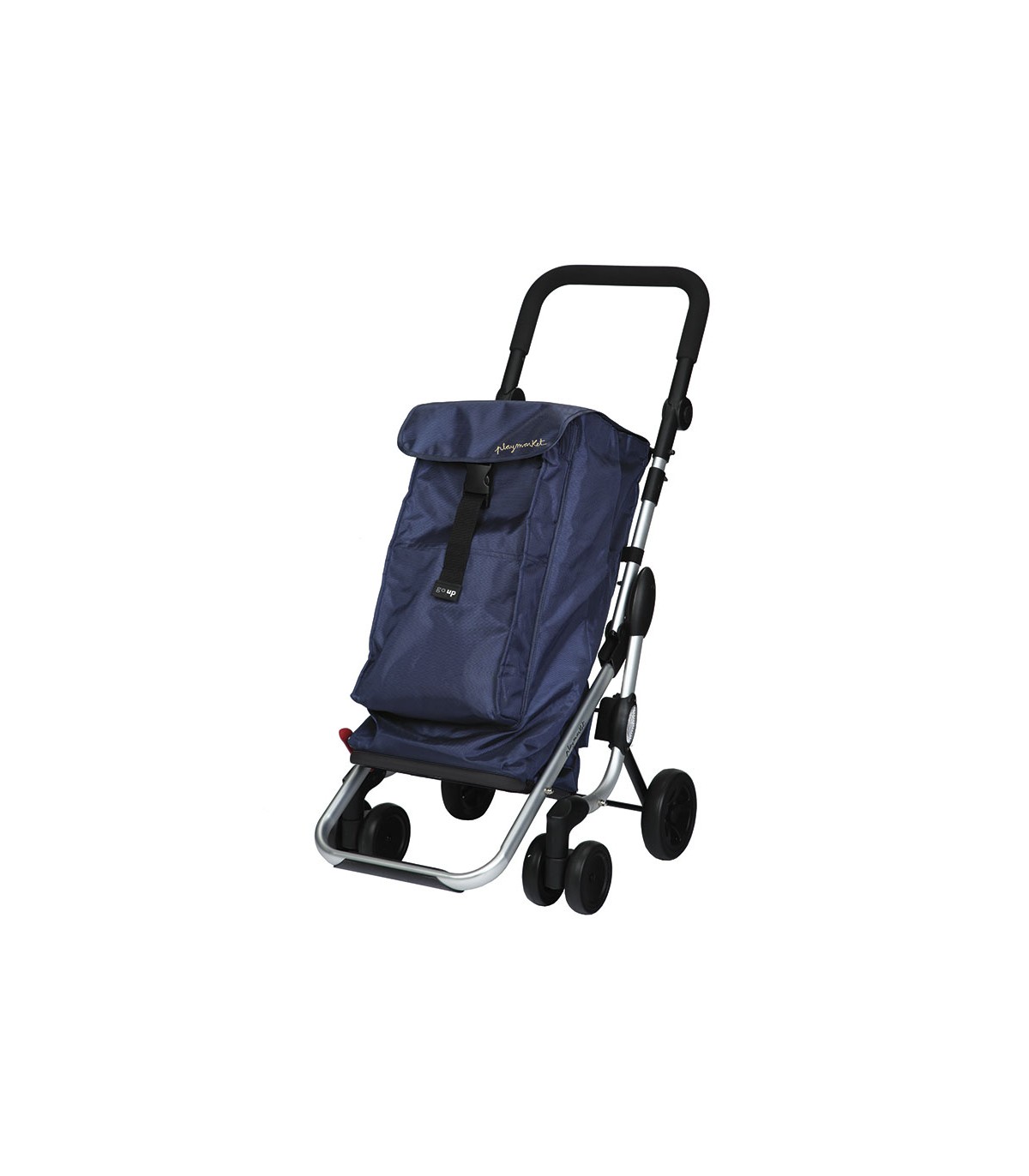 Chasis aluminio 6 ruedas. Ruedas delanteras dobles giratorias 360º y ruedas traseras ultra resistentes. Manillar ergonómico regulable en altura y con espuma antideslizante. Bolsa 40 litros con cierre ajustable. Bolsillo delantero térmico 10 litros. Plegado compacto. 48x40xh.110 cm. Plegado: 48x33xh.64 cm. Varios colores.