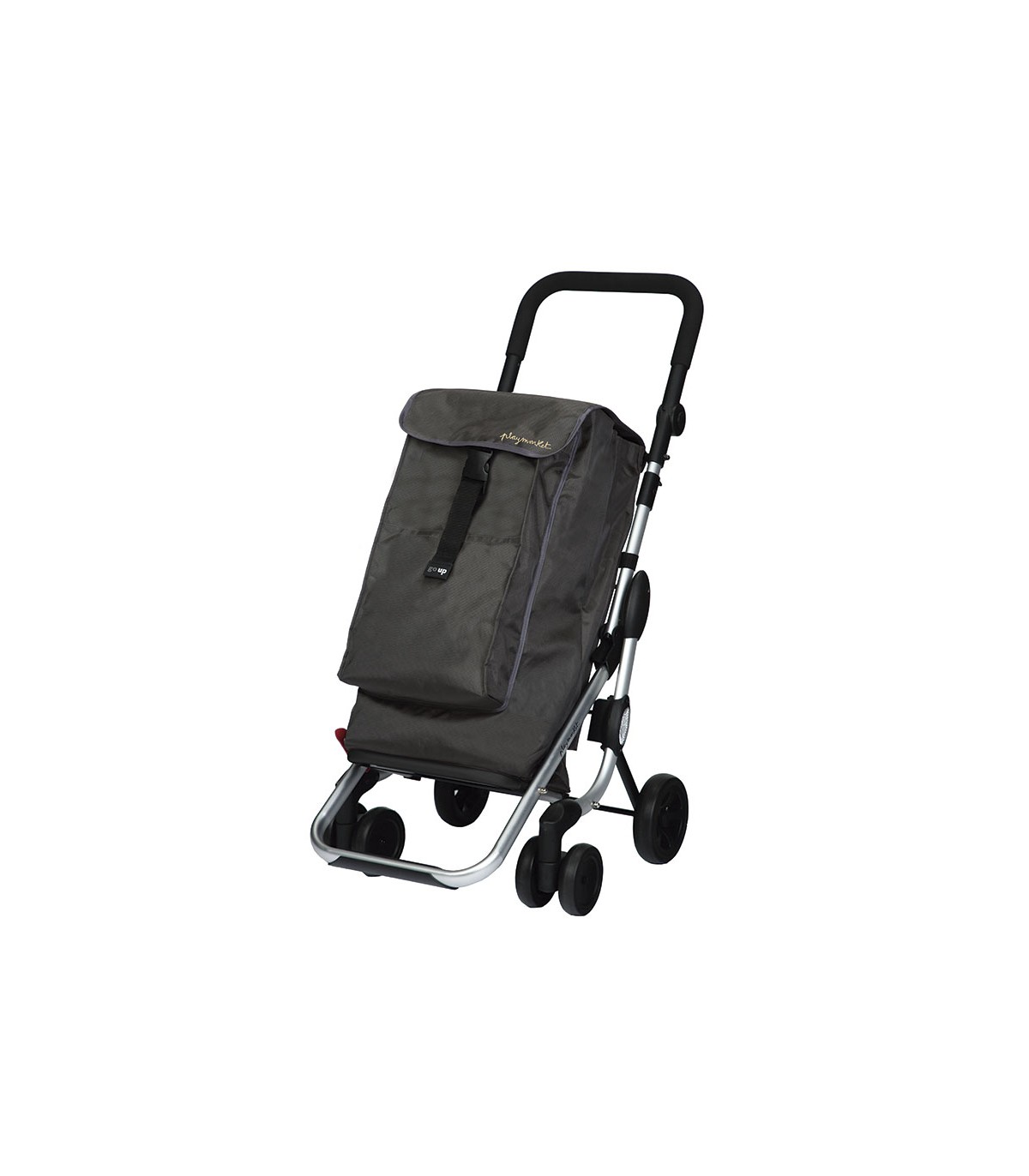 Chasis aluminio 6 ruedas. Ruedas delanteras dobles giratorias 360º y ruedas traseras ultra resistentes. Manillar ergonómico regulable en altura y con espuma antideslizante. Bolsa 40 litros con cierre ajustable. Bolsillo delantero térmico 10 litros. Plegado compacto. 48x40xh.110 cm. Plegado: 48x33xh.64 cm. Varios colores.