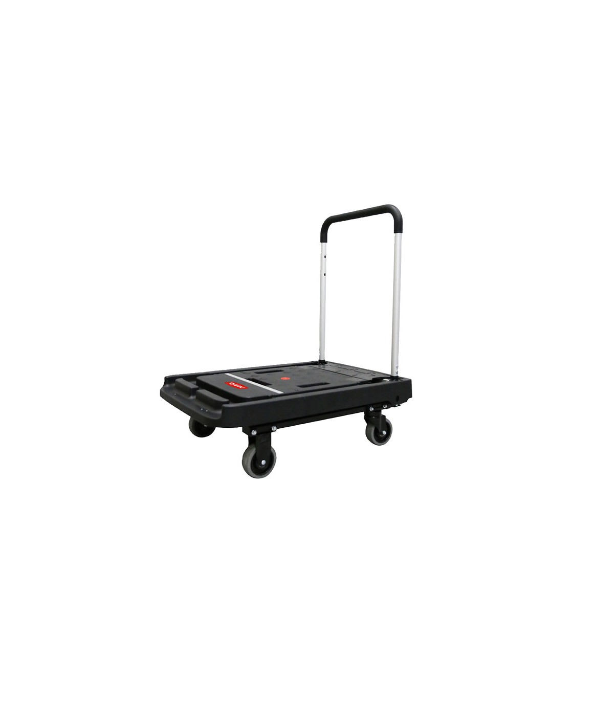 Carretilla de mano con plataforma plegable de aluminio y 4 ruedas plegables. Materiales: polipropileno, aluminio y ruedas de goma sinténtica TPR. Multifución 2 en 1 (plataforma rodante con asa y plataforma con asa plegada de 4 ruedas).
