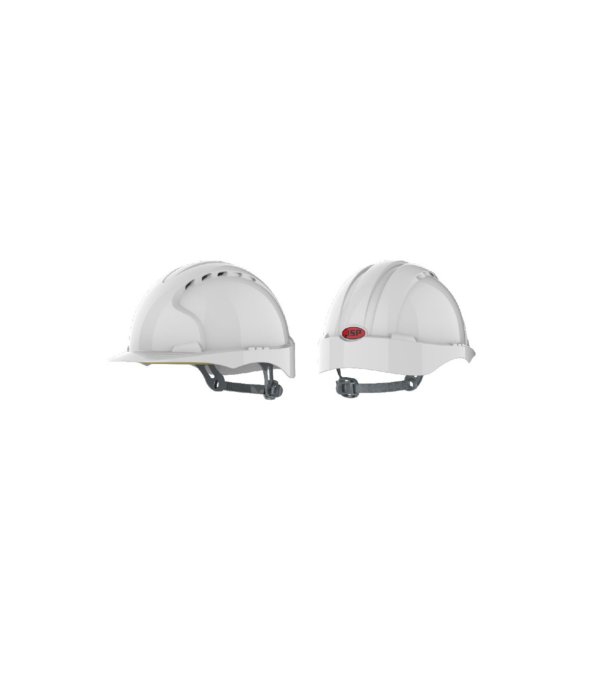 Carcasa del casco de HDPE resistente. Ajuste de precisión. Aislamiento eléctrico de 440 V (ac) y resistencia a metales fundidos. Casco ventilado con trinquete deslizante OneTouch.