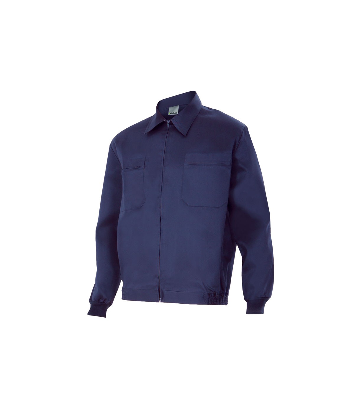 Cremallera central. Puños canalé. 2 bolsillos con cremallera en el pecho. Cintura con laterales elásticos. Composición: 20% algodón, 80% poliéster. Gramaje 190 gr.