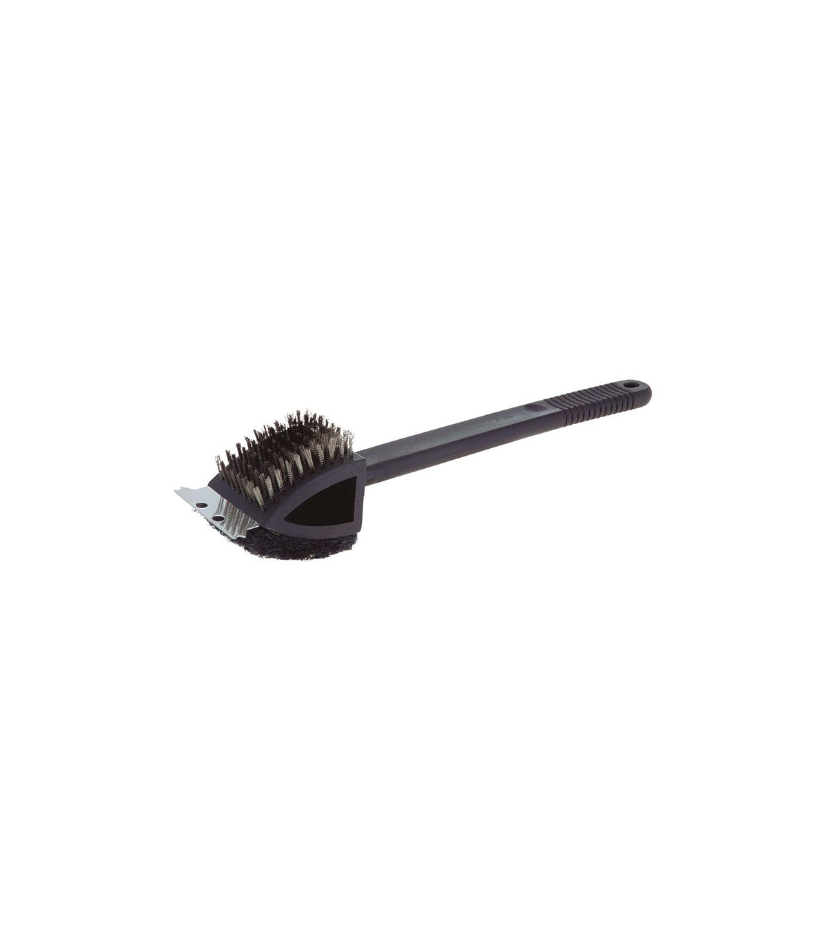 Metal/plástico. 3 en 1: rascador, cepillo acero inox, cepillo pp. 80 cerdas pelo inox.