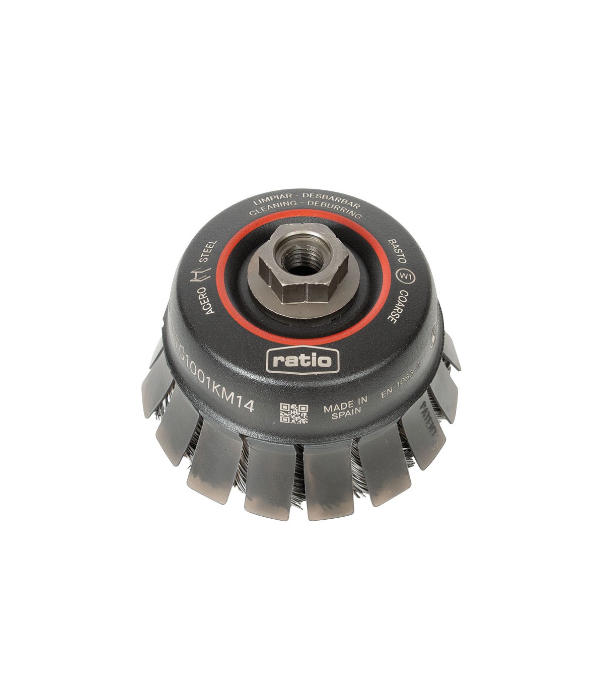 Alambre acero trenzado. Casquillo roscado M14. Para cepillados fuertes. Acabado basto (W1).