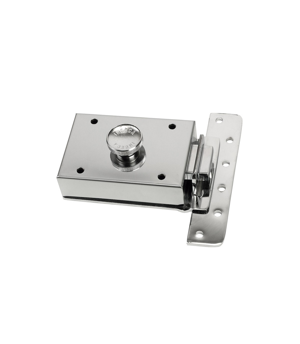 Contrapalanca pomo interior. Solo llave, sin mano. Cromada. Escudo latón macizo fijado al interior por 4 tornillos.