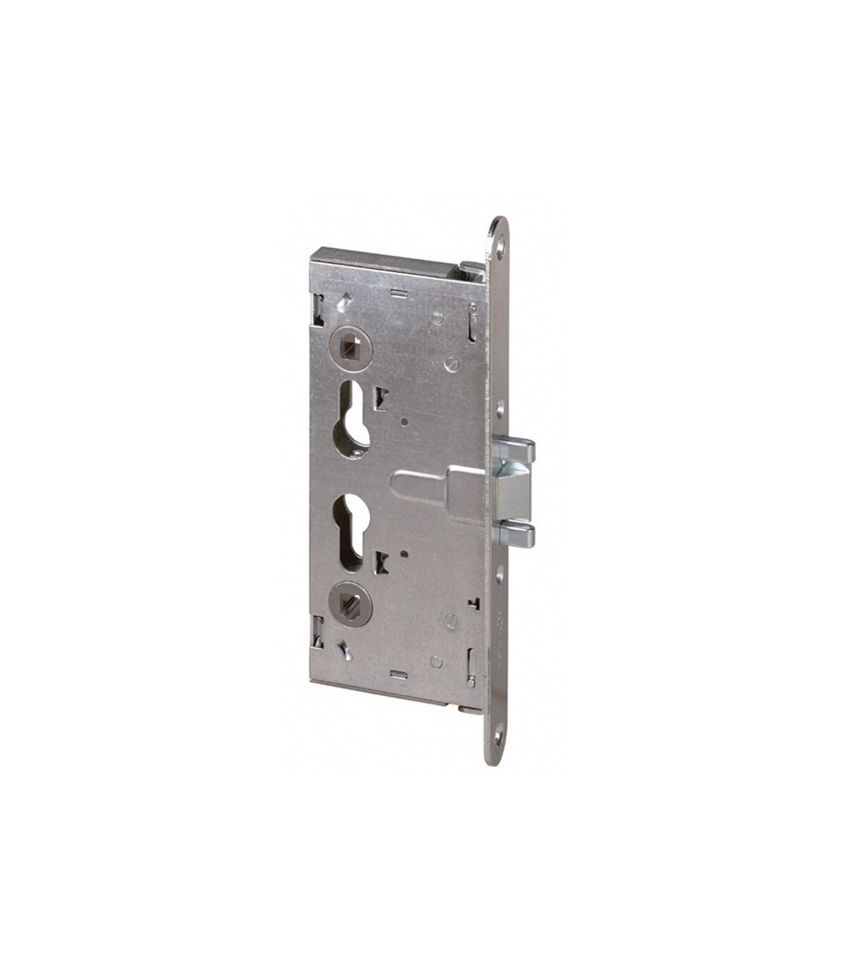 Picaporte reversible accionado por llave y manilla. Palanca de 15 mm. accionada por llave. Cuadro manilla 9 mm. Frente, caja y picaporte de acero cincado. Cilindro no incluido.