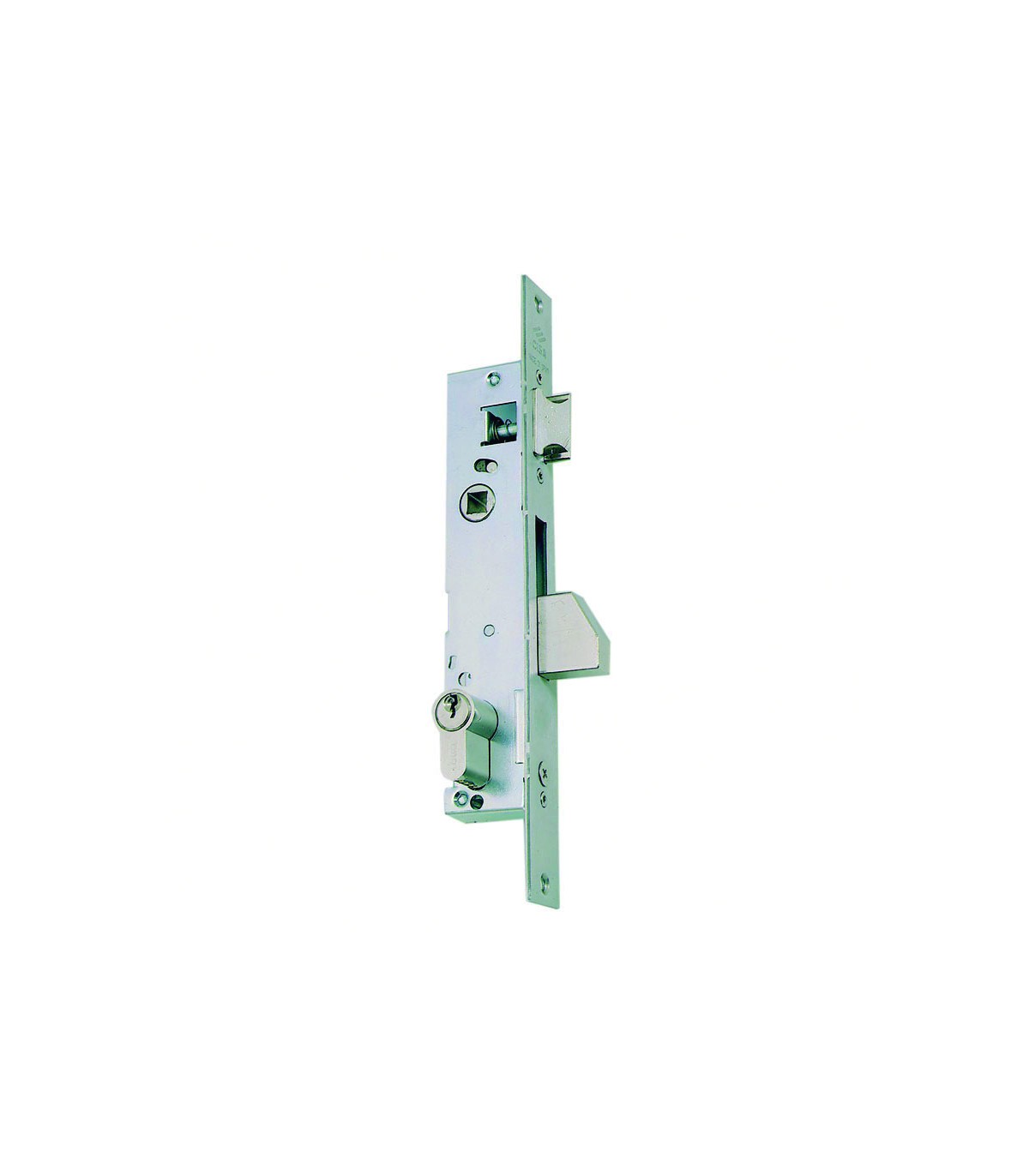 Golpe y llave. Picaporte reveresible. Cilindro niquelado 30x30 mm. Leva 13,02 mm. Cerradero inox. 2 embellecedores para cilindro.