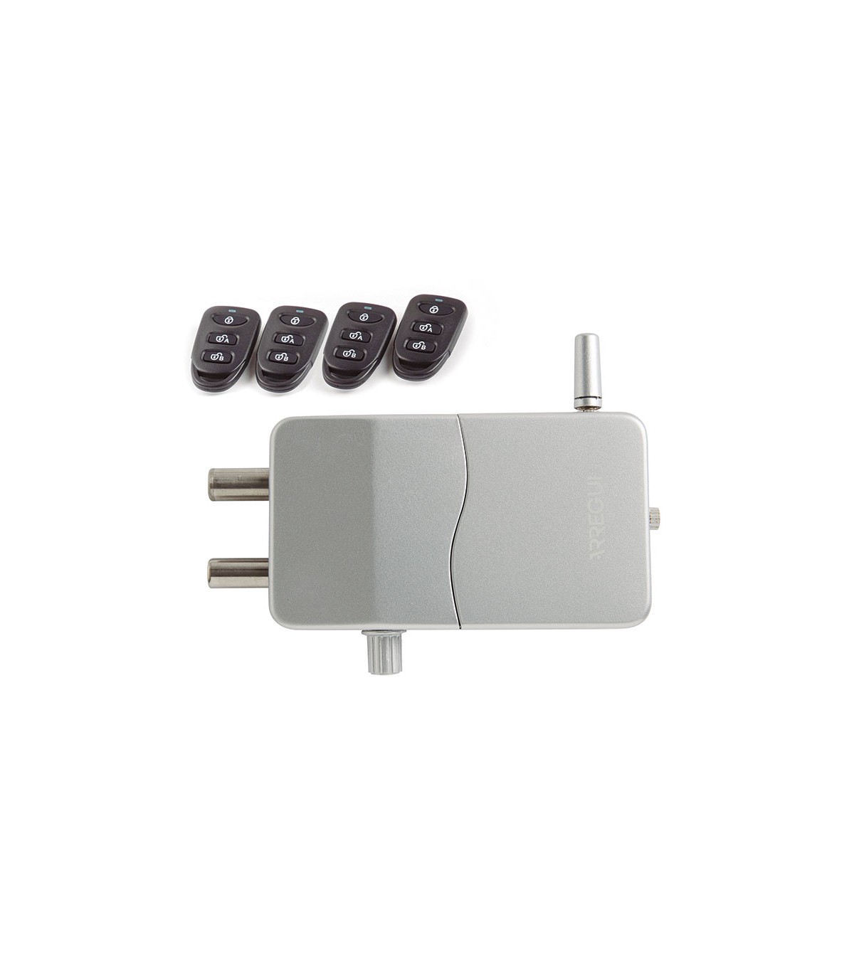 Uso interior. Sin cables. 4 mandos a distancia. Códigos evolutivos. 4 pilas AA + batería emergencia 12 V. Alcance puertas metal 2 m, puertas madera hasta 5 m. Fácil configuración. . 13,3x7,5x3,5 cm.