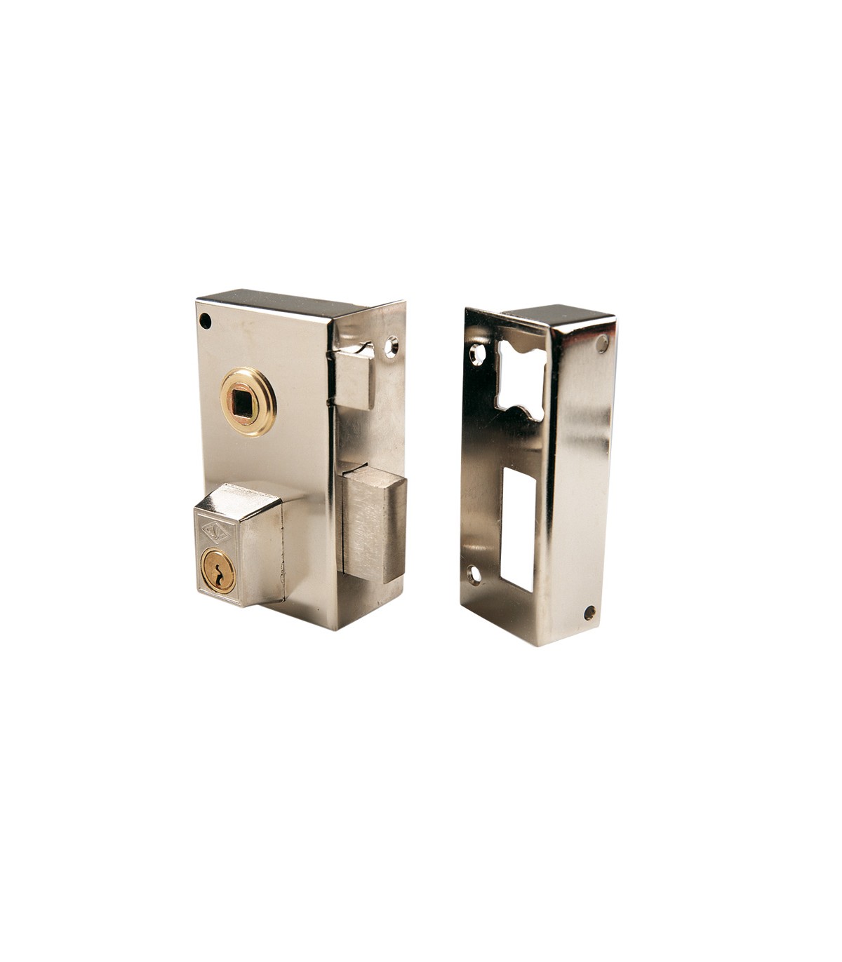 Niquelada. Golpe y llave estriada, (golpe accionado por manubrio). Cilindro perfil (5056/50/3).